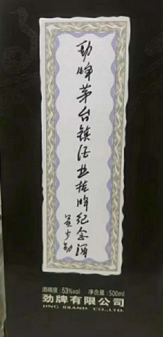 据悉,瓶体上有吴少勋亲笔签名的“劲牌茅台镇酒业挂牌纪念酒吴少勋”浮雕字。