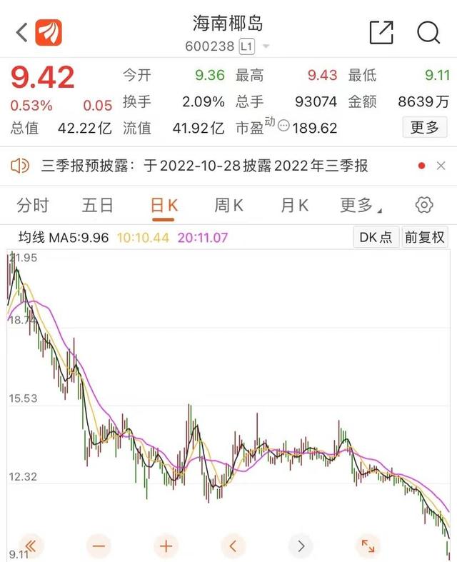 此前,海南椰岛因“躺枪”椰树直播事件当日股价跌超7%,并在互动平台回应投资者:“公司出品的椰汁为椰岛椰汁,与椰树集团无关联。”今年以来,海南椰岛股价持续下跌,从年初最高的18.55元跌近50%,10月11日收盘报9.42元/股。
