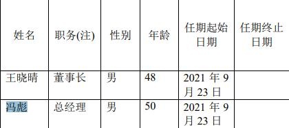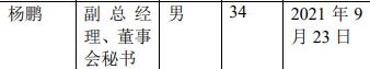 公司2021年年报显示,冯彪为自2021年9月23日起任公司总经理;杨鹏自2021年9月23日起任副总经理、董事会秘书。