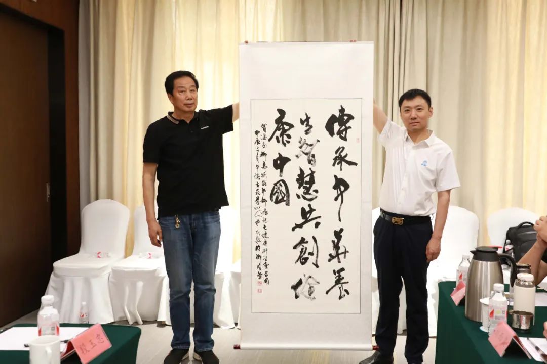 在研讨会的尾声,王叶飞代表海南椰岛集团接受了中国书法家协会会员、南阳书法家协会副主席尹先敦先生赠送的书法作品“传承中华养生智慧,共创健康中国”。