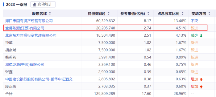 替海南椰岛填补上述被盗资金窟窿的全德能源,是在2023年一季度成为海南椰岛第二大股东的。