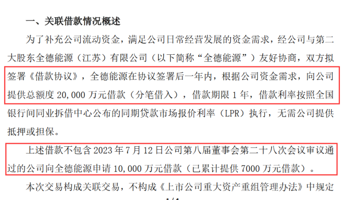 海南椰岛2023年7月24日发布的公告道出详情——海南椰岛要向全德能源借款3个亿。