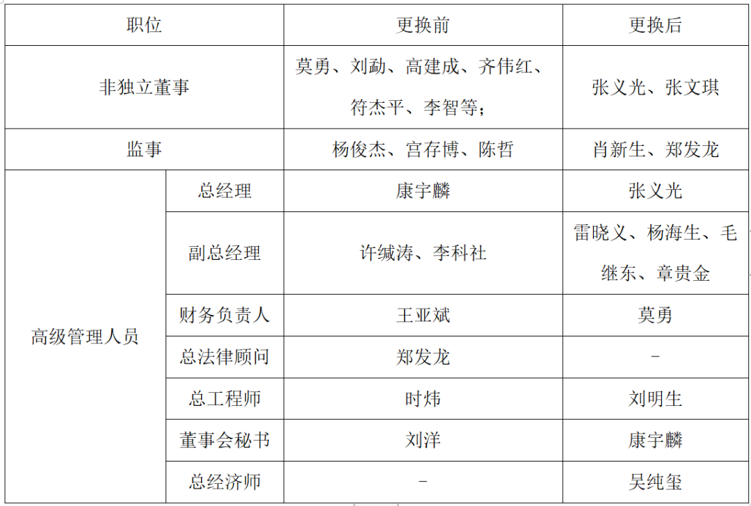 自2020年1月延长化建披露《重组预案》至今,延长化建董监高人员的更换情况如下: