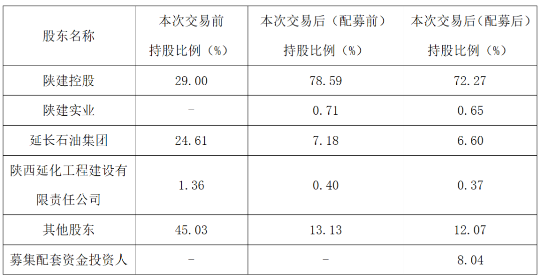 延长化建此次重组及募集配套资金引入了新的投资者,推动延长化建股东结构多元化发展,符合国有企业优化重组的产业布局,有利于优化陕西省国有资本布局结构。