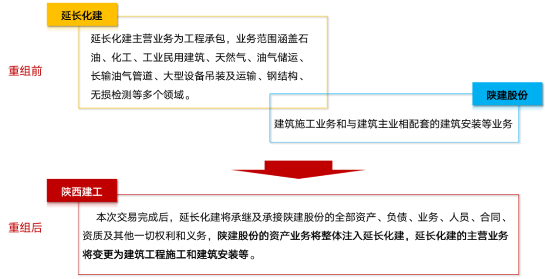 重组完成后,延长化建作为陕西省属建工板块资本运作平台,整合重组陕西省内零散的优质建筑业资产。