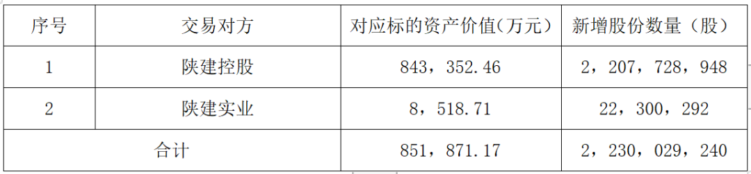 从发行数量来看,本次发行向全体交易对方发行的股份数量为2,230,029,240股,其中向各交易对方发行的股份数量为: