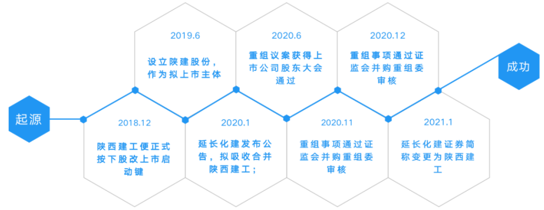 2020年1月,陕西延长石油化建股份有限公司(现已更名为“陕西建工集团股份有限公司”,以下简称“延长化建”)发布重大资产重组公告,拟发行股份购买资产并吸收合并陕建股份;