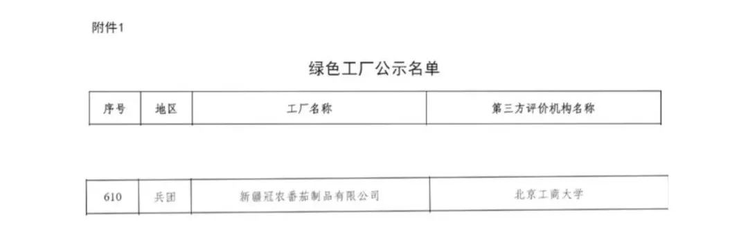 近日,工业和信息化部节能与综合利用司公示了2021年度绿色制造名单,新疆冠农果茸股份有限公司所属新疆冠农番茄制品有限公司榜上有名。