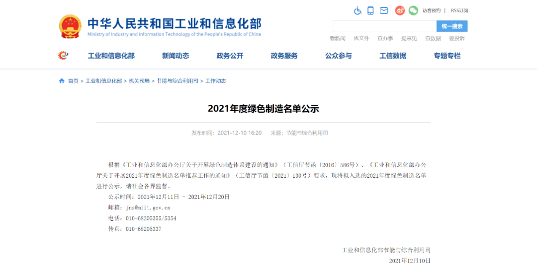 据悉,工业和信息化部组织开展绿色制造名单评选,旨在不断完善我国绿色制造体系,全面推行绿色制造,助力工业领域实现碳达峰、碳中和目标,是我国实现制造业转型升级的重要手段。