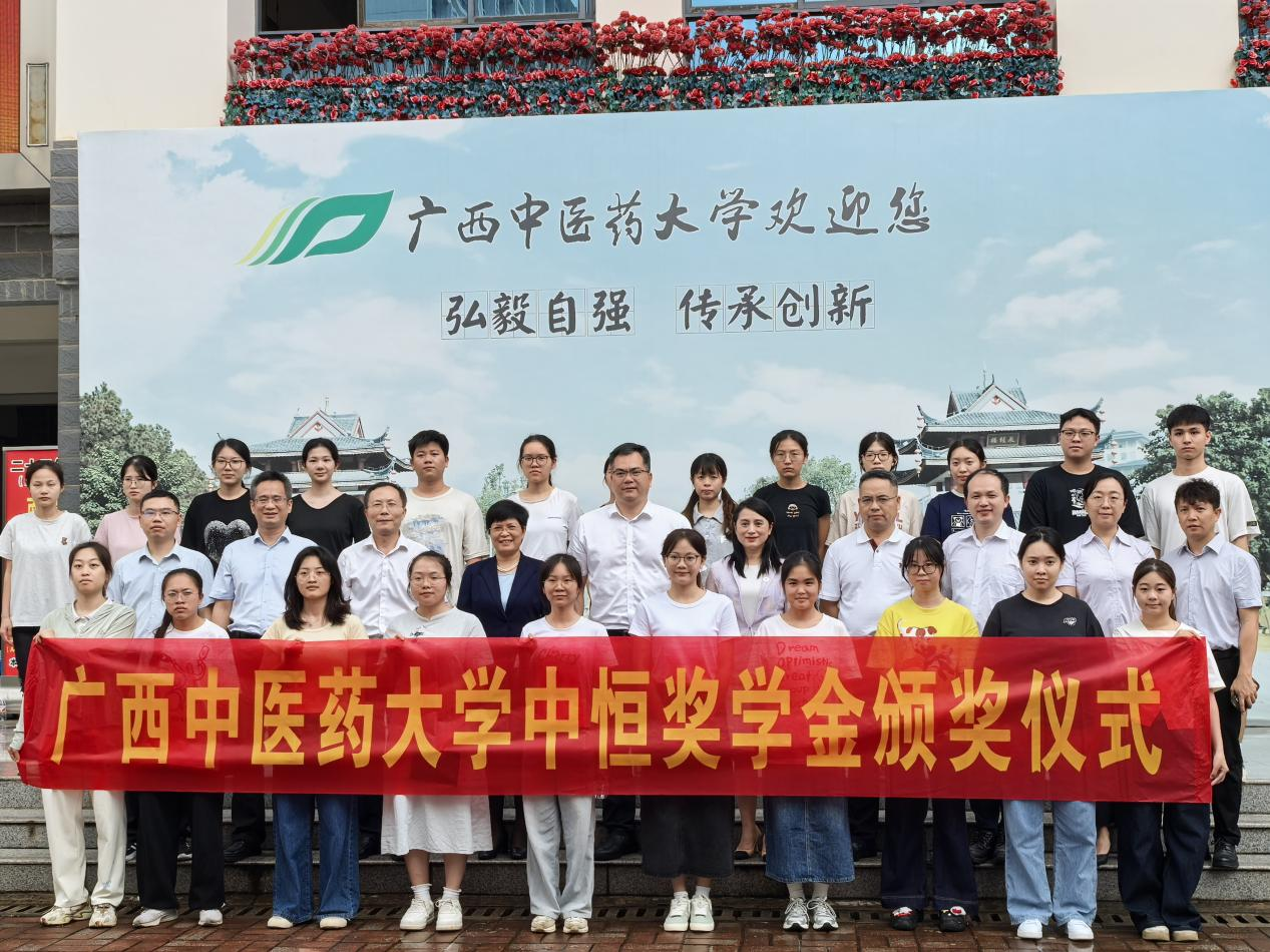 2025年5月19日,广西中医药大学举行2025年“中恒奖学金”获奖学生颁奖仪式。中恒集团党委书记、董事长杨金海,党委委员、副总经理陈明;广西中医药大学党委常委、副校长钟宏桃;广西红十字基金会宣传筹资部部长魏渝容出席仪式。