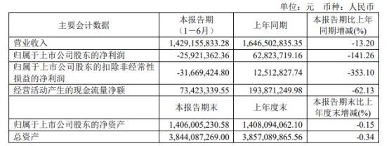 鑫科材料2023年1-6月营业收入为14.29亿元,同比下降13.20%;归属于上市公司股东的净利润为-2592.14万元,上年同期为6282.37万元;归属于上市公司股东的扣除非经常性损益的净利润为-3166.94万元,上年同期为1251.28万元;经营活动产生的现金流量净额为7342.33万元,同比减少62.13%。