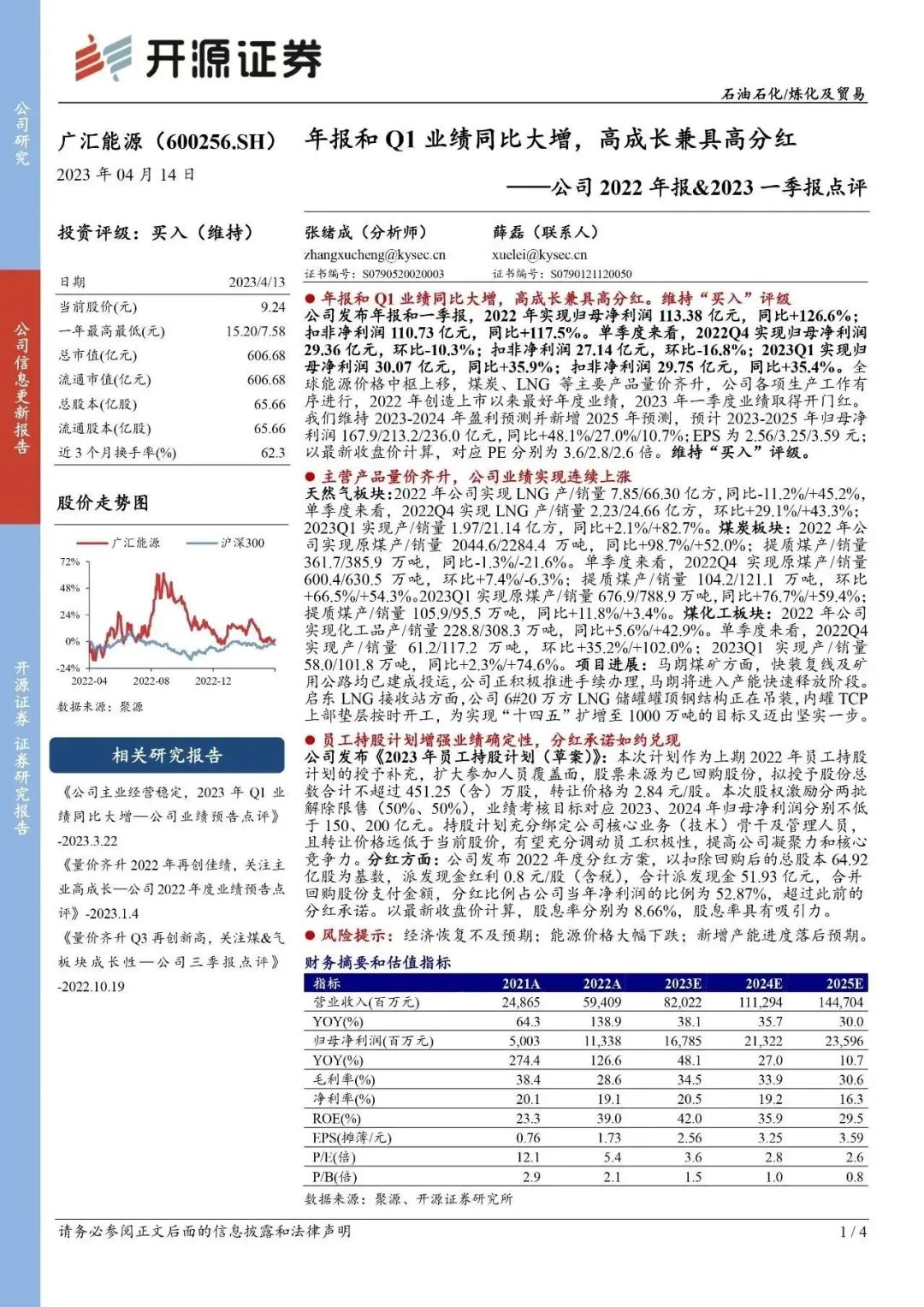 广汇能源年报和Q1业绩同比大增,高成长兼具高分红