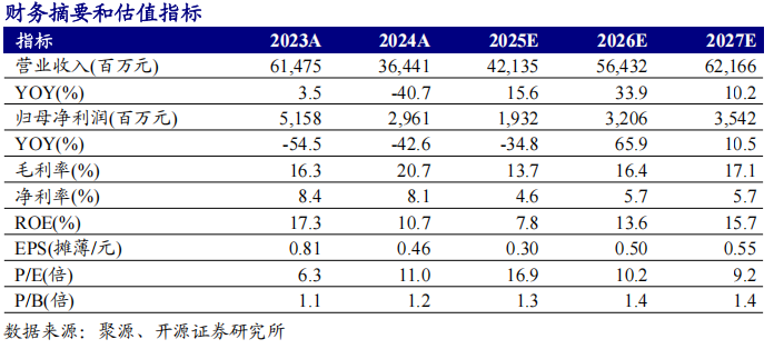 公司发布2025年中报,2025H1公司实现营业收入157.5亿元,同比-8.7%;实现归母净利润8.5亿元,同比-40.7%;实现扣非后归母净利润8.3亿元,同比-43.6%。单Q2来看,实现营业收入68.5亿元,环比-23.1%;实现归母净利润1.6亿元,环比-77%,实现扣非后归母净利润1.3亿元,环比-81%。综合考虑到煤炭价格下滑,我们下调2025-2027年公司盈利预测,预计2025-2027年归母净利润为19.3/32.1/35.4亿元(前值为35.8/43.6/45.4亿元),同比分别-34.8%/+65.9%/+10.5%,EPS分别为0.30/0.50/0.55元,对应当前股价PE分别为16.9/10.2/9.2倍。考虑到公司煤炭&油气&煤化工新建项目有序推进,未来成长性突出,叠加高分红凸显价值,维持“买入”评级。