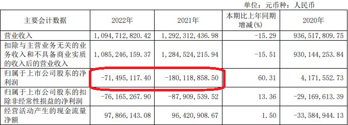 2021年,公司实现营业收入12.92亿元,归属于上市公司股东的净利润-1.80亿元,归属于上市公司股东的扣除非经常性损益的净利润-8790.95万元;经营活动产生的现金流量净额9642.09万元。