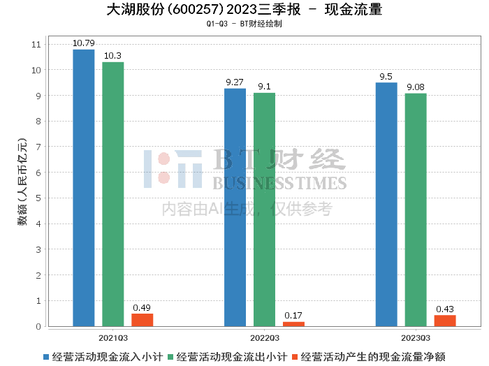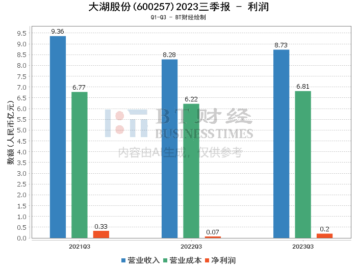 综合来看,大湖股份在2023年三季度的经营状况表现出了积极的趋势,资产负债结构的改善、营业收入和净利润的增长以及现金流量的显著提升,都表明了公司在市场中的竞争力和发展潜力。