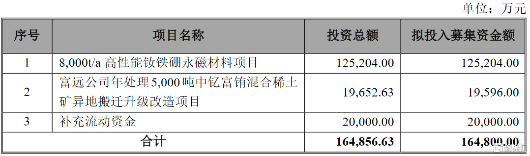 调整前: 1、本次非公开发行A股股票募集资金总额不超过人民币16.48亿元(含本数)。募集资金拟用于“高性能钕铁硼永磁材料项目”、“中钇富铕混合稀土矿异地搬迁升级改造项目”及补充流动资金。具体如下: