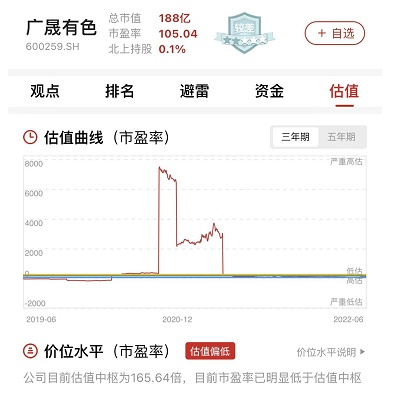 图:广晟有色估值曲线,来源:市值罗盘APP