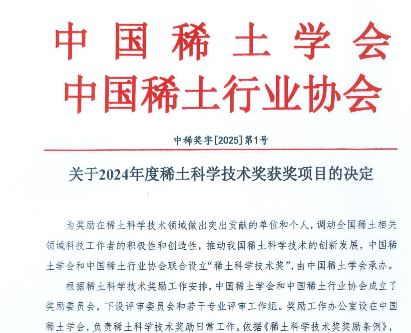 近日,中国稀土学会公布了2024年度稀土科学技术奖获奖项目,其中广晟有色富远公司联合广东省科学院资源利用与稀土开发研究所共同完成的“南方离子吸附型稀土冶炼高盐废水零排放关键技术”,荣获2024年度中国稀土学会科学技术进步二等奖。
