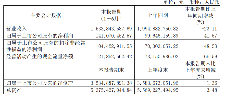 2023上半年,阳光照明实现营业收入15.34亿元,同比下降23.11%;净利润1.41亿元,同比增长41.57%。
