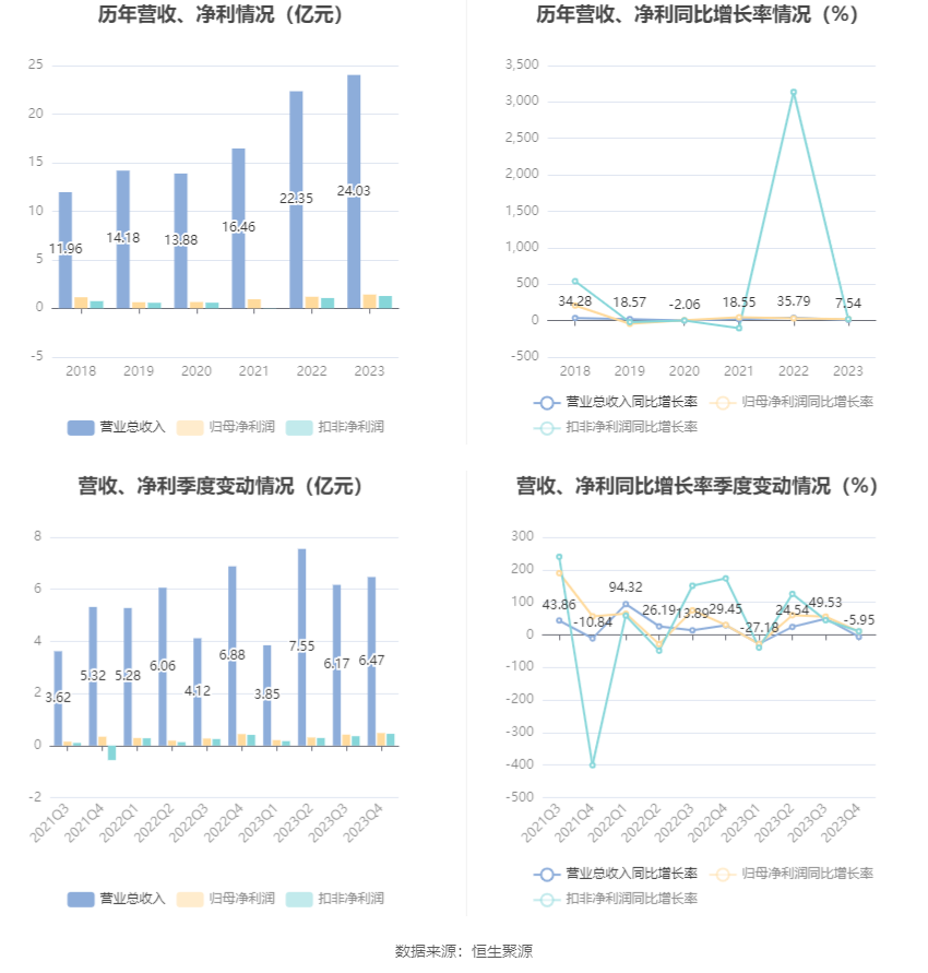 年报显示,2023年年末公司十大流通股东中,新进股东为MORGAN STANLEY & CO. INTERNATIONAL PLC.、申万宏源证券有限公司,取代了三季度末的易方达国企主题混合型证券投资基金、吴文选。在具体持股比例上,特沃(上海)企业管理咨询有限公司、嘉实基金-特沃(上海)企业管理咨询有限公司-嘉实基金-灝远单一资产管理计划、曲峻葳、倪秀鞍持股有所下降。