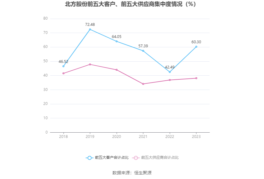 报告期内,公司前五大客户合计销售金额14.49亿元,占总销售金额比例为60.30%,公司前五名供应商合计采购金额9.84亿元,占年度采购总额比例为38.15%。