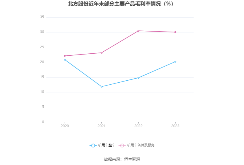 分产品看,矿用车整车、矿用车备件及服务2023年毛利率分别为20.16%、30.03%。
