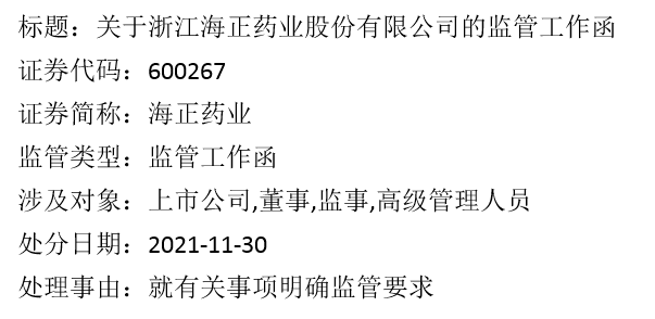 上交所向海正药业(600267)下发监管工作函,就有关事项明确监管要求。