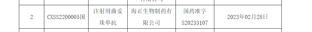 3月3日,药监局官网显示海正药业曲妥珠单抗生物类似药获批上市。