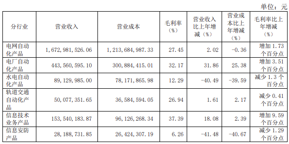 报告期内,公司电网自动化产业累计订货 226,616 万元,营业收入 167,298 万元