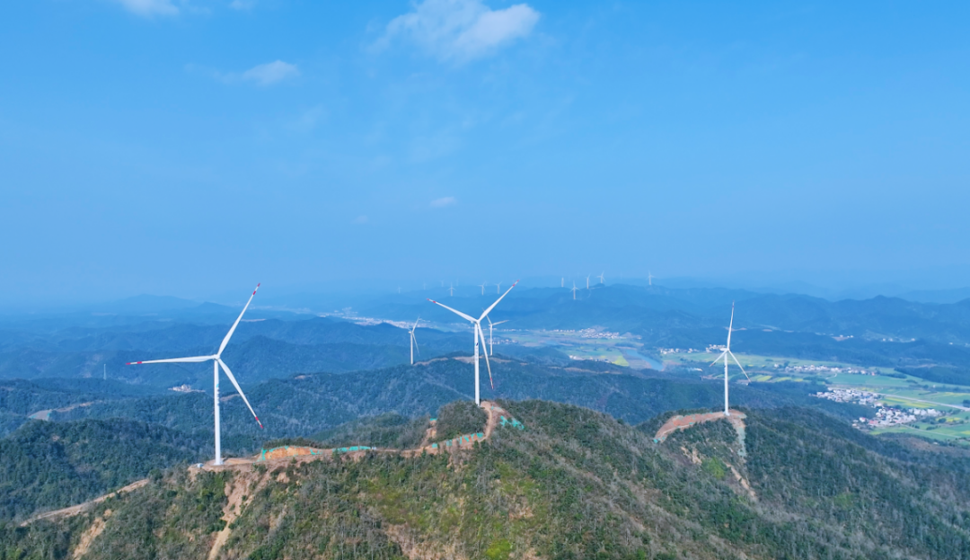 华电福新东至县泥溪风电场位于安徽省池州市东至县青山乡、昭潭镇及龙泉镇境内,总装机容量为150MW。项目正式投产后,按燃煤机组折算,年可节约标煤9.2万吨、减排二氧化碳约28.1万吨、烟尘排放114.5吨,二氧化硫排放102.7吨,对推动当地能源结构优化,助力地域绿色和经济高质量发展做出了突出贡献。