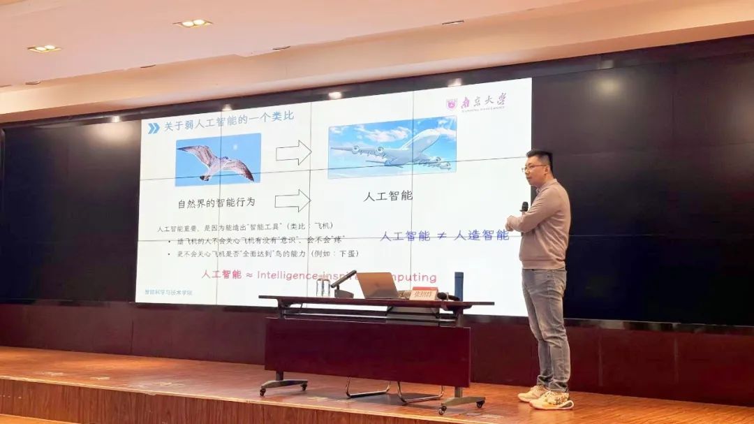 首先,张老师以自然界的智能现象为切入点,深入浅出地讲解了人工智能的发展历程、强人工智能VS弱人工智能,以及当前大模型热潮下的技术背景和研究方向。