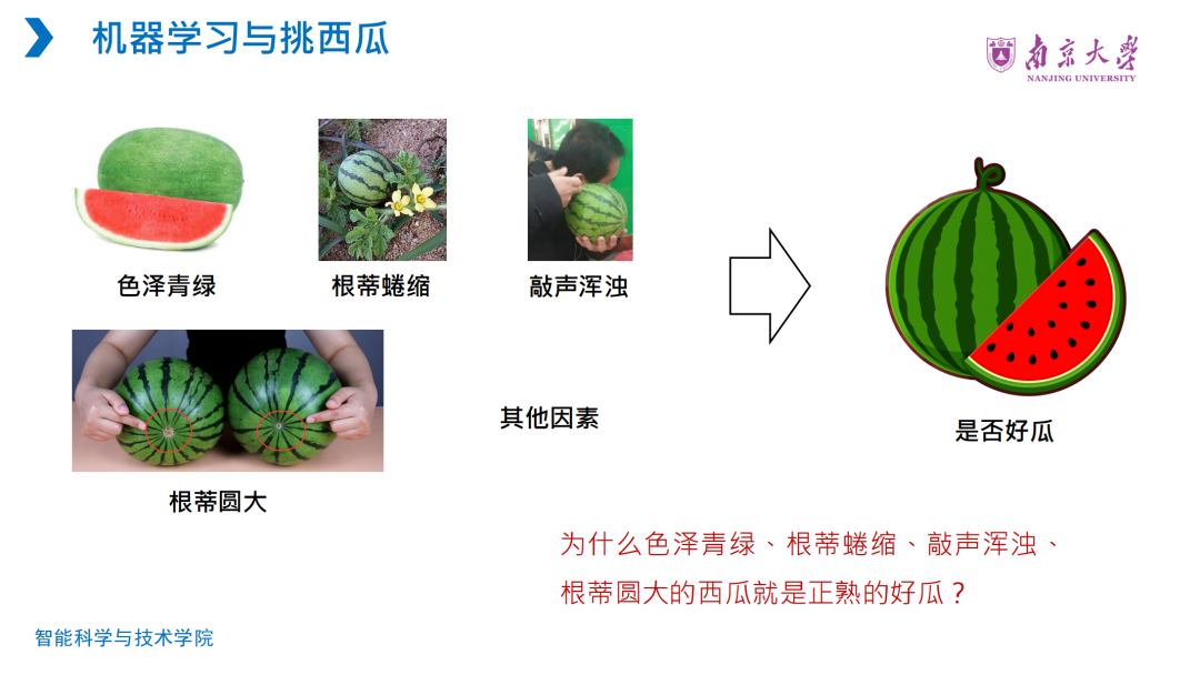 其次,张老师引用南京大学周志华教授“如何挑选好西瓜”的经典案例,生动阐释了人工智能、机器学习、深度学习和大模型之间的包含关系,并详细讲解了大语言模型的基本原理、基座模型(监督学习)和推理模型(强化学习)的区别。