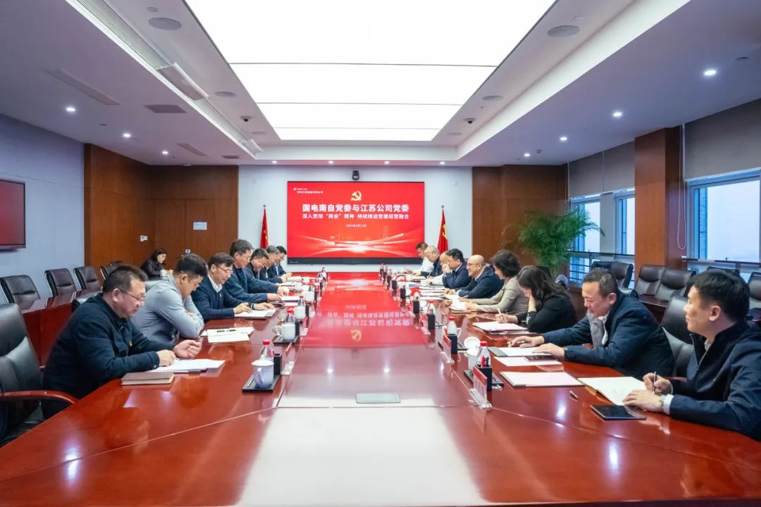 为进一步深入学习宣传贯彻全国两会精神,落实集团公司“四力四推”党建工程创一流、开展产业链创新链党建赋能行动要求,提升党的建设质量生动实践。3月12日,国电南自党委和江苏公司党委举办“深入贯彻两会精神持续推进党建经营融合”党建联建共建活动。江苏公司党委书记、董事长杨惠新,党委副书记、工会主席邵松,国电南自党委书记、董事长经海林,党委副书记、工会主席王茹,党委委员、副总经理杨乘胜出席活动。
