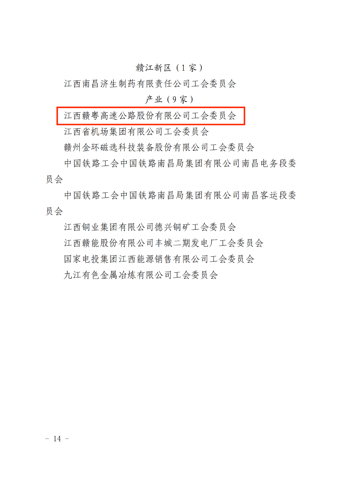 一份荣誉,一份激励。此次荣誉的获得,是对赣粤高速工会工作的充分肯定。下一步,公司工会将继续夯实基础,服务中心工作,关心关爱职工、积极探索新形势下工会工作的特点和规律,激发工会建设的生机活力,激发全体干部职工的凝聚力和向心力,为实现公司“两个回归”工作作出新的更大贡献。