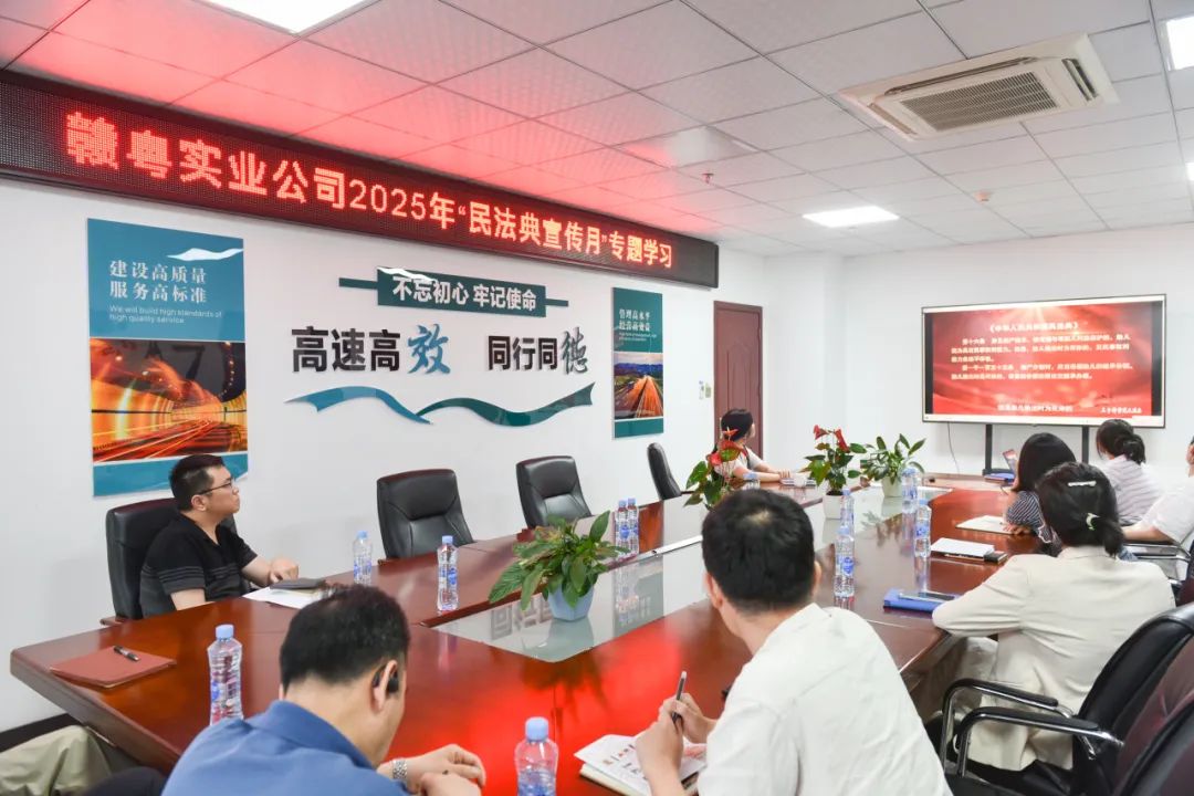 2025年5月是我国第五个“民法典宣传月”。连日来,赣粤高速各单位积极创新形式、丰富载体,将法律知识送到员工身边、融入企业经营,掀起尊法学法守法用法的新热潮,为企业高质量发展注入强劲法治动能。