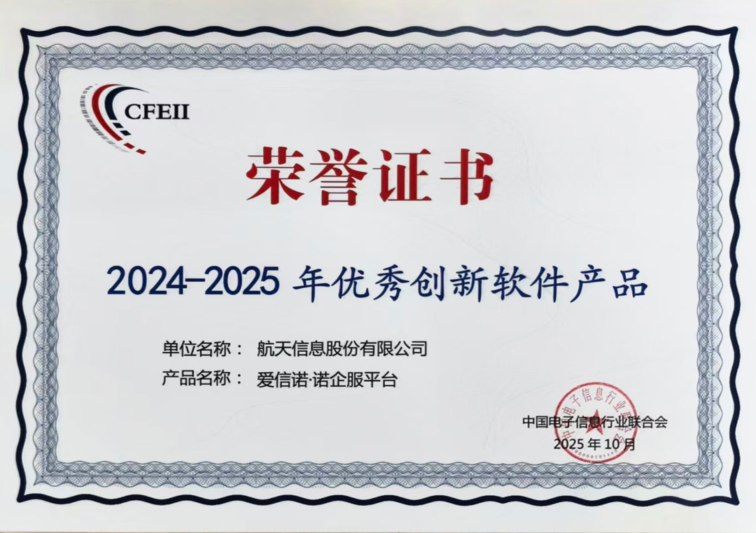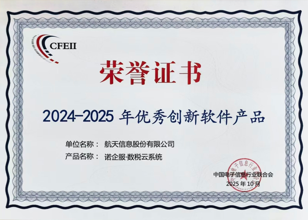 近日,航天信息股份有限公司自主研发的“爱信诺·诺企服平台”与“诺企服·数税云系统”两款数字财税产品,入选中国电子信息行业联合会组织评选的《2024-2025年度优秀创新软件产品目录》,展现了公司在数字财税领域的产品创新能力和市场实践成果。