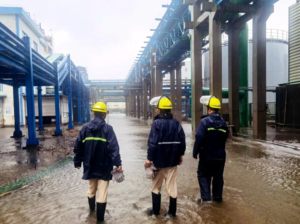 目前,嘉化能源各生产装置运行平稳,全员以高度责任感坚守岗位。台风暴雨持续,请广大干部、员工、值班人员务必做好自身防护和人身安全!