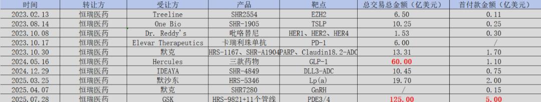 今年上半年,恒瑞的BD战略迎来高潮。3月,其Lp(a)抑制剂HRS-5346以首付款2亿美元、总交易额19.7亿美元授权默沙东,刷新自身首付纪录;8月,与GSK达成覆盖PDE3/4抑制剂HRS-9821及11个早期项目的合作,首付款5亿美元,潜在总额125亿美元,创下中国创新药单笔BD总交易额新高。交易对象从区域性药企跃升至默沙东、GSK等全球TOP10药企,印证了顶级MNC巨头对恒瑞研发实力的背书。