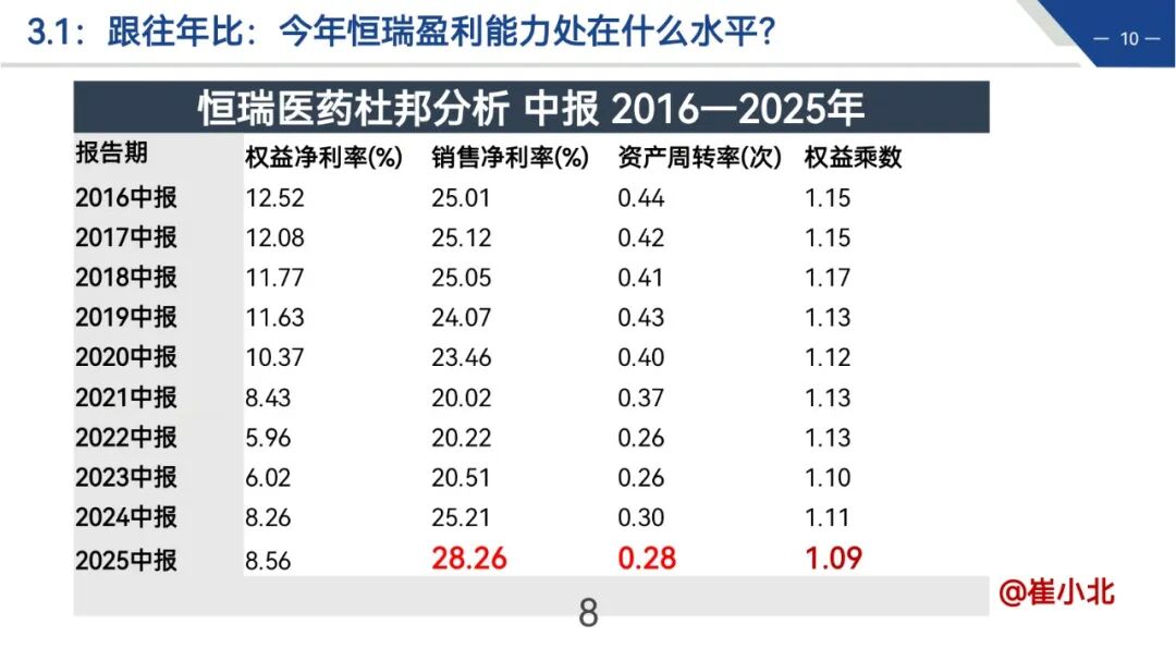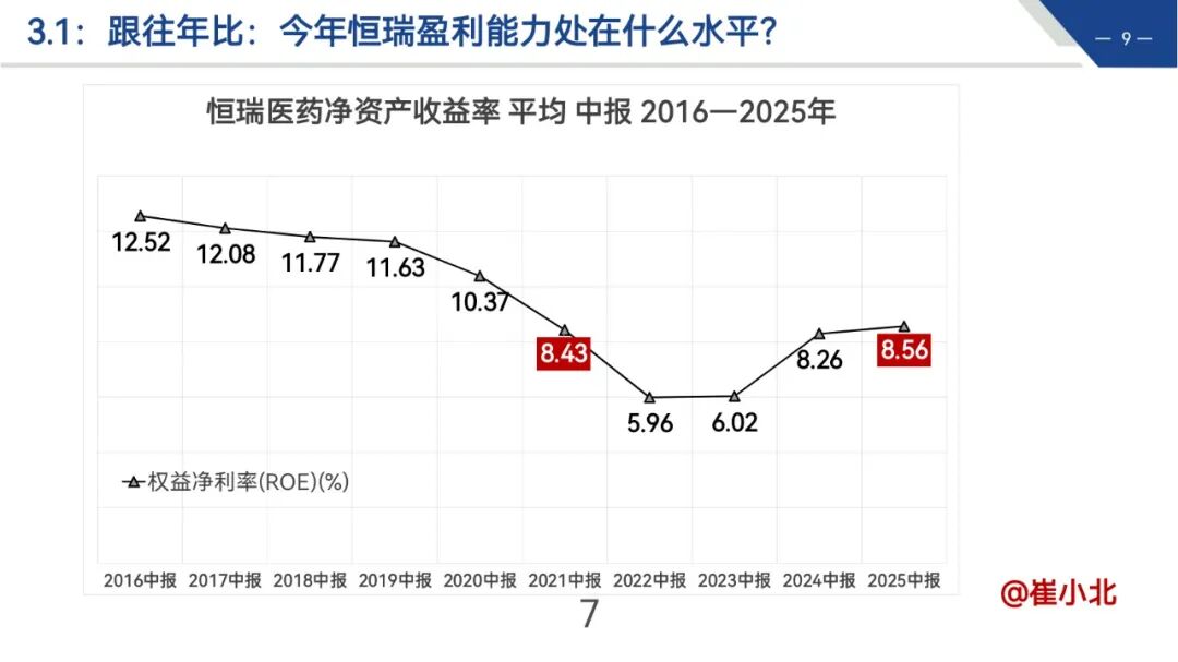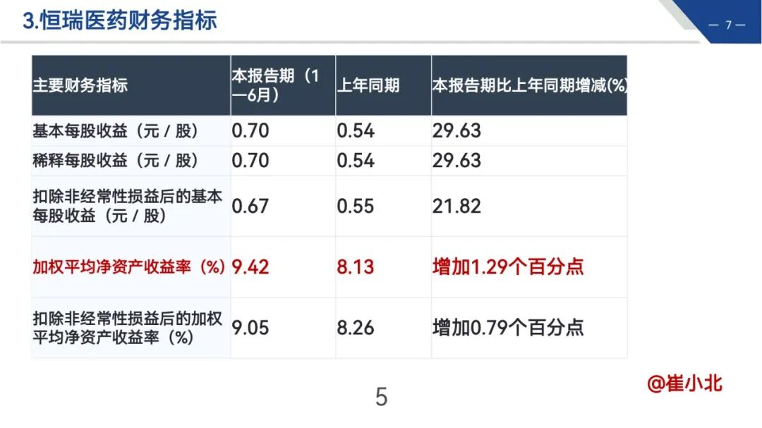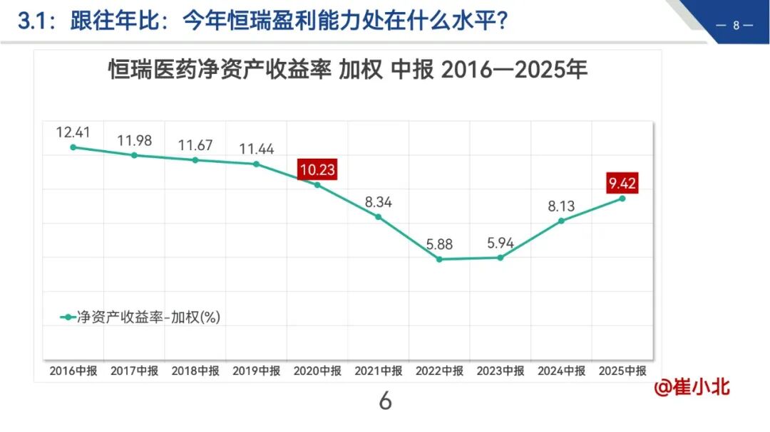 今年上半年恒瑞ROE已经超过了集采前的水平,超过了2021年的8.34%。