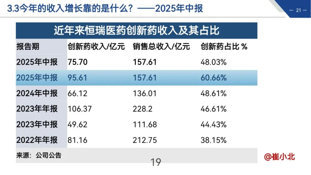 今年上半年,考虑海外授权收入,恒瑞医药创新药占比达到了60.66%。