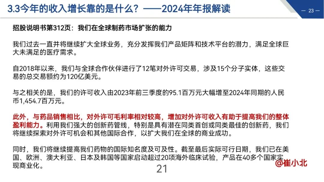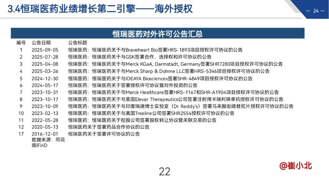 收入增长是杠杆解,而创新药收入增长?海外授权,是恒瑞收入增长的重要驱动力。