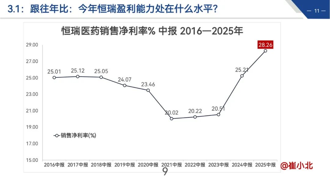 今年上半年恒瑞医药净利率创新高,毛利率明显回调。