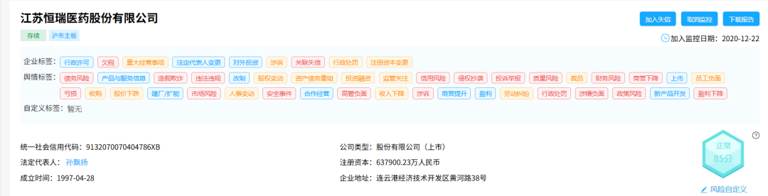 凭借AI大模型RiskRaider风险雷达对恒瑞医药进行风险层面的评估,部分截图如下: