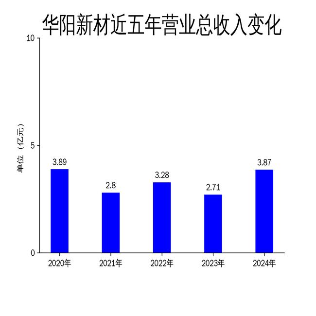 2025年4月26日,华阳新材发布2024年年报。报告显示,公司实现营业总收入3.87亿元,同比增长43.00%;归属净利润为-1.86亿元,同比增长6.76%;扣非净利润为-1.86亿元,同比增长6.94%。尽管营收大幅增长,但公司仍未能摆脱亏损困境,毛利润为-3301.40万元,较上年同期进一步恶化。