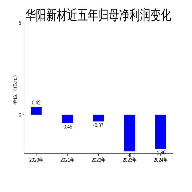 华阳新材2024年归属净利润为-1.86亿元,虽然同比增长6.76%,但公司已连续多年陷入亏损泥潭。自2020年以来,公司净利润持续为负,2021年亏损幅度更是达到207.51%。尽管2024年亏损有所收窄,但公司面临的财务压力依然巨大。