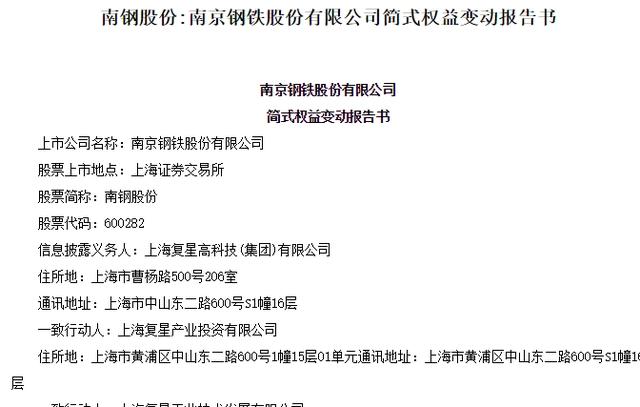 值得注意的是,本次权益变动前,复星系合计控制南京钢联拥有南钢股份59.10%的权益,郭广昌是南钢股份的实际控制人。如本次权益变动完成,复星系将“清仓”离场,公司实际控制人将发生变化。