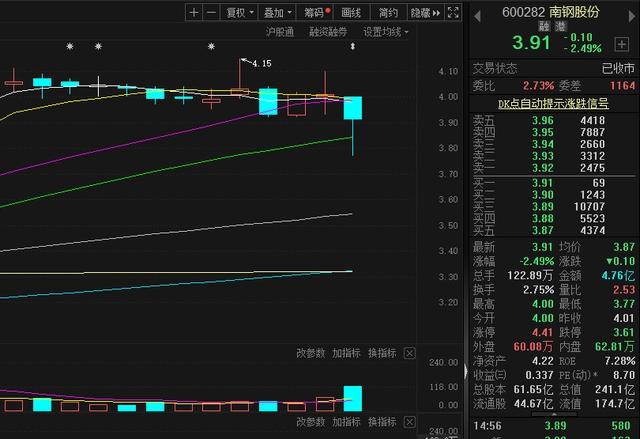 3月15日,截至收盘,南钢股份报跌2.49%,报3.91元每股。