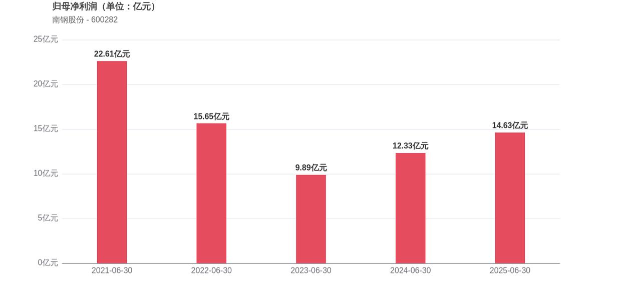 在2025年上半年,南钢股份的经营业绩呈现出营收下滑但利润增长的特点,实现营业收入289.44亿元,同比下滑14.06%,实现归母净利润14.63亿元,同比增长18.63%。