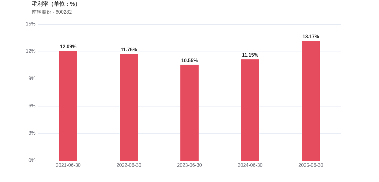 从反映盈利质量的指标来看,南钢股份净利率由2024年上半年的3.66%提升至4.85%,提升了1.19个百分点,毛利率从11.15%提升至13.17%,上升了2.02个百分点,净资产收益率为5.15%,同比增长了0.42个百分点。