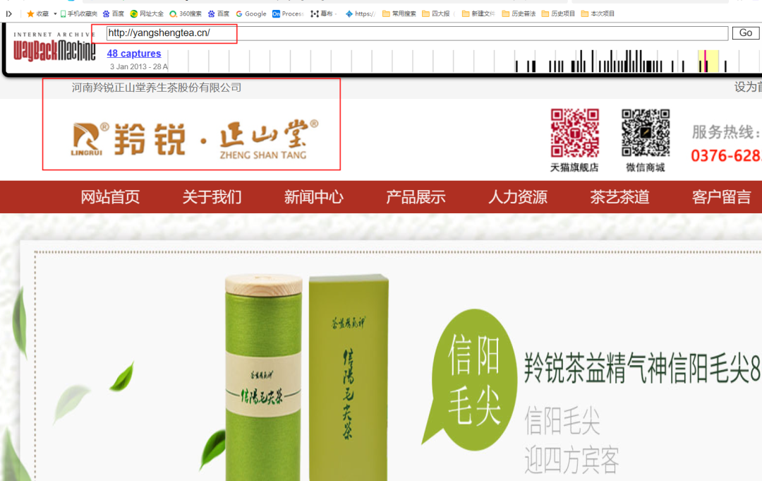 据羚锐正山堂官网,截至查询日2025年1月2日及2025年4月23日,网站“http://yangshengtea.cn/”显示服务器错误,被拒绝访问。通过网页回溯,该网页或为羚锐正山堂官网,其产品包括信阳毛尖、信阳红茶、羚锐柠檬姜茶等。
